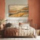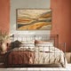 色調介於赭土、灰綠與淡金之間,象徵土地的沉穩與生命的循環,畫面沒有刻意強調光源,卻在紋理與層次中自然溢出暖意。此作品特別適合玄關、客廳、書房等空間,營造帶有安靜力量的生活氣場,也十分契合深色木質調或鄉村暖色系的居家風格。