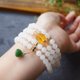 天然和田玉-白玉 蜜蠟回紋桶珠南紅設計多圈手串手持項鍊s