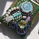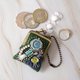 小さなビーズ刺繍のがま口 No.77 グリーン×ウール ネックレス・バッグチャームにも アクセサリーケース 一点物