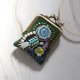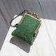小さなビーズ刺繍のがま口 No.77 グリーン×ウール ネックレス・バッグチャームにも アクセサリーケース 一点物 - 吊飾/掛飾 - 羊毛 綠色