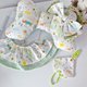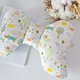 彌月禮盒四件組 :豆絨蝴蝶枕+雙層荷葉圍兜+寶寶扭結髮帶+奶嘴鍊防塵套