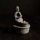 人偶看似坐著放鬆的姿態,但卻無法肯定那是一個穩定的狀態,她頭微微仰著,可能來自於肩膀不自覺的用力,她內在仍有想緊抓的什麼,可能因我下意識也發現了這件事,於是我將她的內在空間整理了出來,嘗試讓她保持在一個空的狀態,因為在這樣的狀態下,她顯得疏離。