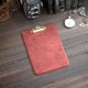 由於記事夾板表面為皮革材質,用力書寫時可能會留下筆跡,敬請留意。