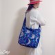 表裏布皆選用日本進口印花棉布,做成兩面皆可使用大容量送子鳥包,可透過帶子長度的調整來改變成側肩背包(長打結)或斜背包(短打結)!內層有付小內袋,袋口有附加羊毛氈球及蠟繩可做為簡單固定功能,棉布包輕巧好用,也可避免塞入太多物品造成包包太重而導致腰酸背痛的情形!