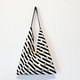 手工日本印花棉布粽型手提包(可雙面使用) 使用日本進口印花棉布,雙面不同印花效果的三角形手提包,造型時尚具有設計感! 含提帶高60公分 袋底寛36公分