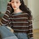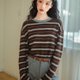 - 羊毛羊絨條紋針織上衣羊毛衫羊絨女士2025新款外穿圓領不易起球