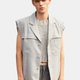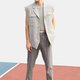 淺灰無袖正裝背心,襯衫式衣身設計,搭配包釦。