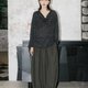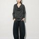 亞麻混紡的花灰毛織,初秋穿的厚度,輕薄之間透出紗線的肌理紋路,簡約大氣的寬松 T 恤的廓形,領口流動順暢的大蕩領垂順下來,簡單又有型,領口和下擺的卷邊帶來隨性氣息,在細節裡呈現了一絲時髦感
