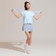 圓弧領型和微落肩袖型,不僅能更加柔和肩部線條,更讓整體造型更為優雅。採用最先進的Aqua.X布料,快乾吸濕排汗,舒爽涼感