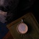 這只吊墜的圖案設計為一座春光明媚的花園,刻繪有象徵純潔的雛菊、代表了永恆真心的勿忘我,上方點綴一隻帶來幸運的鮮紅的瓢蟲。精美的細節描繪與飽滿豐富的配色,在珍珠貝母潔白底色的襯托下更顯溫柔可愛。