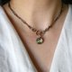 這只有如迷你水晶球的純銀吊墜有著非常特殊的製作技法:反向雕刻水晶。吊墜為法國製,為20世紀初期(新藝術時期)的作品。