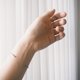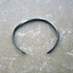 使用銀製成的開放式手環,將銀方條扭轉並塑形,另外使用硫化處理將銀染黑。相較於其他款式,配戴視覺上較纖細有流動感。提供免費敲字服務,若有需求請備注給設計師~