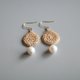 以細緻金屬線一針一線編織而成,如蕾絲般透亮的圓形花樣,搭配高品質淡水珍珠點綴。