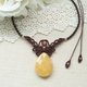 ◇ 尺寸:黃玉30x22mm/太陽石圓珠5mm/項鍊長度約80 cm,可自由調整長度