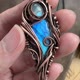使用拉長石及月亮石,配以純銅線,以繞線方式手作而成, 然後再加上復古做舊效果, 再拋光處理令花紋更具深度和對比.