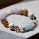 藍色系喉輪能量自然原礦晶石手鍊,特殊寶石切割,搭配黃銅金色調與天然大理石紋路松石,輕時尚與華麗感。