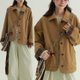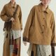 卡其色 單排扣工裝外套 文藝復古休閒寬鬆百搭小眾上衣 - 女大衣/外套 - 棉.麻 卡其色