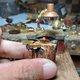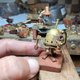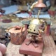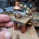 作品以黃銅與銅手工打造,細節皆以螺絲與焊接完成。木質底座與金屬紋理交織出溫暖的工坊氛圍。