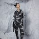 版型細節以Oversize的視覺輪廓為基底,讓整體視覺保持著Oversize的寬鬆、反骨感但也能帶出一股修身且不輸正式襯衫的經典氛圍;在前片設計上利用版型技巧,延伸出一片翻領擋片,擋片上結合抽皺綁帶結構,抽皺用的綁帶延伸到身體右側可自由綁在腰上創造出自己想要的綁帶效果,也可解開自然垂墜成多層次洋裝的視覺效果;擋片上的口袋可作為真實口袋使用。