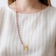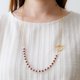淡いピンク色の淡水パールと、深みのあるガーネットを組み合わせたロングネックレスです。