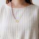 スネークチェーンの滑らかな輝きが、胸元に洗練された雰囲気を添えます。