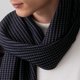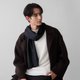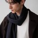 以黑色為底融入淡藍與灰色三色交織成條紋,展現沉穩的氣息。在 MOTHERHOUSE 的男士圍巾系列中屬於輕巧好搭配的款式。
