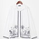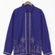 衣身與袖口上以線描風格繡上樹木、葉片與鳥的圖案,展現自然靜謐的詩意氣息。