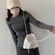 這款白色抓皺方形肩背包以適合秋季的白色金屬感繩線製成,