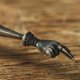 來自1878年的猶太古董純銀托拉指針(亦稱 Yad)。Yad 在希伯來語中意為「手」,其指尖的設計精準而巧妙,專為指向經文中的字句而設計。由於托拉經卷是手工書寫在羊皮卷上的神聖之物,直接以手觸碰經文被視為對其神聖性的冒犯。因此,托拉指針的誕生正是為了解決這一需求。它通常細長而輕巧,既方便使用,又能確保避免直接接觸經文,從而維護托拉經文的神聖性。對收藏家和愛好者而言,它是一件難得的好物。