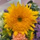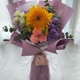 由於客人不想花束太大的關係,本身我是打算以大約5朵非洲菊做主花的。豈料在揀選花材時,竟被我碰到這隻非常可愛又特别的多頭向日葵泰迪😍(你沒看錯,這是向日葵,名字叫泰迪,就是teddy bear🐻 的意思,毛茸茸,非常像樣),花頭尺寸跟我張臉差不多大😮,太吸引了!實在沒有不用她來做主花的理由。