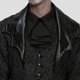 - 黑暗哥德美學宮廷層次領外套。採用緹花料,仿皮斜紋壓膠料製作。大氣蝙蝠元素翻領設計。精緻的雕花寶石手縫扣。