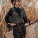 - 蒸汽朋克 灰色毛呢 英倫復古 西裝領 雙排扣馬甲 拆卸披肩 斗篷
