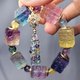 在天然寶石的領域,螢石屬於顏色最豐富的石頭,因為含有鐵、鎂、銅等離子,綠、紫、黃、藍、棕、橙、粉……螢石幾乎可以呈現任何顏色,宛如彩虹般美麗,故亦有「彩虹寶石」之美稱。