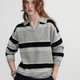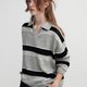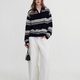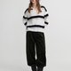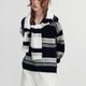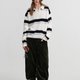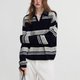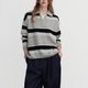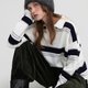 羊毛混紡材質,質地柔軟親膚,保暖厚實優良的回彈性、伸縮適度的張力。經典藏青白灰色系條紋交織打造出獨特的視覺效果。