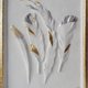 作品「優雅的羽毛」(出自「白金」系列)採用石膏淺浮雕技法製作。