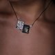 項鏈以兩個畫框結合而成,左邊以厚重的顏料抽象地表達藝術家激盪的內在情緒; 右邊以Resin Art Paint創作,由於以人手創作,所以每個作品都是不一樣,呈現每個獨特美態。