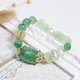 嚴選「希望之石」-葡萄石與「機會之石」-綠草莓晶,色澤晶瑩、嬌豔欲滴,予人沈靜、優雅的感覺之餘,葡萄石具有修身、提昇自我、聚財等靈性作用,綠草莓晶可助陶冶情操、修身養性,促進新陳代謝和血液循環,象徵幸運吉祥。