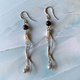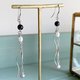 9月の誕生石であるアイオライトを6月の誕生石淡水パールをあしらった耳飾りです。