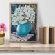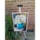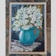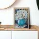 這幅畫傳達了一束白色野花的簡單優雅,以壓克力顏料在畫布上呈現。一個裝有鮮花的明亮綠松石水罐佔據了舞台的中心,其光滑的表面反射光線,為場景增添了亮度。水罐的豐富色彩與野花的純白色花瓣形成鮮明對比,創造出驚人的視覺平衡。