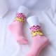 サイズ:22.5㎝〜25㎝(フリーサイズ) 長さ:14㎝ 足元からおしゃれを楽しむ。 お天気がいい日でも、雨の日でも、下を向けば可愛い靴下。 足元を見るたびにるんるんな気分で過ごして欲しい。 そんな気持ちからできた靴下です。 こちらの商品は1点のみの販売です。 他とは違う特別な一足をご自分用にはもちろん、プレゼント等にも最適です。 ・洗濯方法やお手入れ ※ こちらの商品はクリーニング、洗濯機で洗濯できます。 ※ 汚れが付着した場合はもみ洗を推薦します。 ・注意事項 ※ 長時間濡れた状態で置くことをお避けください。 ※ 商品写真はできる限り実物の色に近づけるよう心がけておりますが、お使いのモニターの設定やお部屋の照明によって、若干色味が異なって見える場合がございます。 ※ 作品は一つ一つハンドメイドで制作しており、完成品は掲載画像と若干異なる部分がある可能性があります。予めご了承ください。 ※ (オーダーメイド商品の場合)オーダーメイド商品の返品や返金は受け付けておりません。 ===============