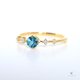 ロンドンブルートパーズのラウンドカットをメインに、4つのメレダイヤを配したK18リングです。海を閉じ込めたような色合いのロンドンブルートパーズの輝きが楽しめるよう、発色・照りの強いルースを1粒ずつ厳選しました。