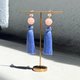 ミルキーローズのビーズは朝露のように澄んだ輝きを放ち、モーヴ色のタッセルが花びらのように揺れて、耳元に涼やかな彩りと気品を添えます。