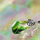 透明感のあるクリアーからエメラルドグリーンへの優しいグラデーション。内部に繊細なダイクロ偏光ガラスの煌きを閉じ込めた、美しい聖水のようなイメージのアイスロックペンダントです。光の当たり方や見る角度で様々な表情をお楽しみいただけます。