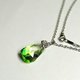 作品ID:2613 / 作品コード:170111-215150 / アメリカンガラス / 約20×13×9mm / 黄緑系緑系 / ダイクロ偏光ガラス加工 / グラデーション加工 / アイスロック加工 / あずきチェーン ステンレス製 42cm / -