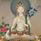 - 這幅以精緻噶瑪嘎孜(Karma Gadri)風格手工繪製的白度母唐卡,完美捕捉長壽與療癒女神的寧靜優雅與慈悲能量。白度母(梵語稱 Sita Tara)象徵純淨、智慧與慈母般的關懷。其手、足與額上的七隻眼睛,象徵她時時覺察、無所不在的照護,能