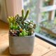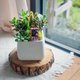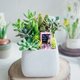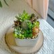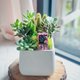 - 簡約冷色調水泥盆加綠意盎然的多肉跟仙人掌,非常適合開幕賀禮與新居落成等。 每一個多肉組盆,都會隨機搭配一個公仔花插,除了綠意也多了一分童趣。