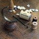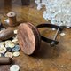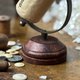 - 迷人古董線軸展示架,用於展示或收納紡織線軸,地球儀造型的支架設計獨特又典雅。深色實木圓形底座,配以金屬支架,線軸本身為未使用過的亞麻紗線。亞麻線軸印有**「Leinen (亞麻) 50 Gramm (50克)」..