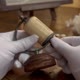 迷人古董線軸展示架,用於展示或收納紡織線軸,地球儀造型的支架設計獨特又典雅。深色實木圓形底座,配以金屬支架,線軸本身為未使用過的亞麻紗線。亞麻線軸印有**「Leinen (亞麻) 50 Gramm (50克)」,以及「Erste Deutsche Ramie-Gesellschaft (第一德國苧麻公司)」、「Emmendingen (Baden) (巴登地區埃門丁根)」、「Gegründet 1887 (成立於1887年)」,這是一間在當時德國紡織業歷史上非常重要的公司,專注於苧麻纖維的生產。