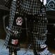 以素色/格紋兩種布料製成的龐克風長褲