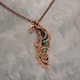 這款獨特的吊墜採用純銅線和天然瑪瑙手工編織而成。銅經過人工老化以營造出古色古香的外觀並突出線材的細節。拋光至光澤並上漆以防止變黑。
